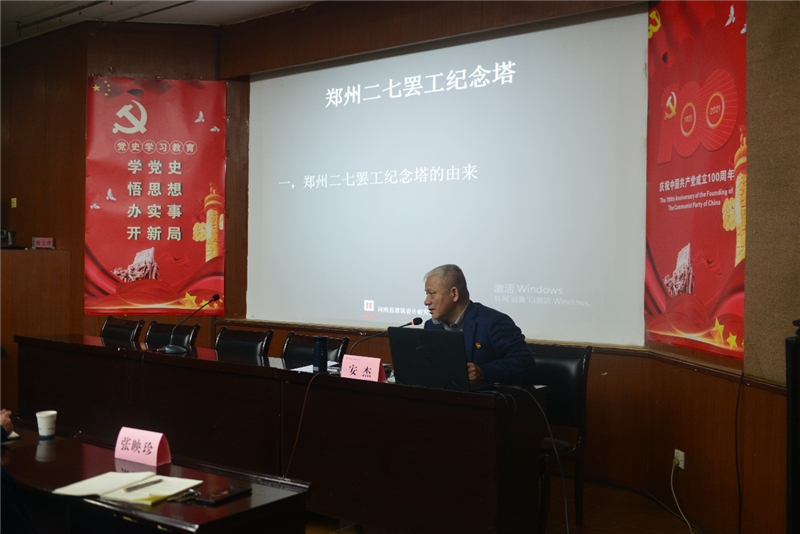 隨后,黨委書記安杰為公司黨員干部講黨史學(xué)習(xí)教育專題黨課。安杰書記以“建筑述說(shuō)歷史——鄭州二七罷工紀(jì)念塔”為主題,圍繞鄭州二七罷工紀(jì)念塔的歷史由來(lái)、二七大罷工在中共黨史中的歷史意義,通過(guò)介紹70年代我院總建筑師林樂(lè)義勇挑重任,主創(chuàng)設(shè)計(jì)二七紀(jì)念塔的經(jīng)過(guò),以及二七紀(jì)念塔作為鄭州市的地標(biāo)性建筑,更是人們心中的精神之塔,先烈們熱血鑄就的“二七精神”讓我們備受鼓舞。