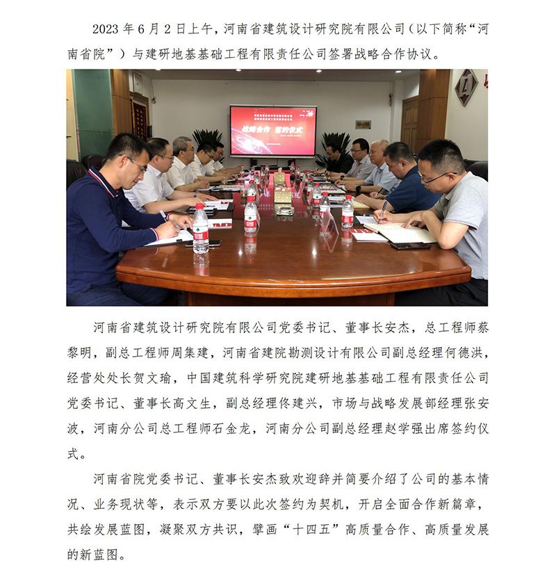 HNAD戰(zhàn)略合作 | 河南省建筑設(shè)計研究院有限公司與建研地基基礎(chǔ)工程有限責任公司達成戰(zhàn)略合作