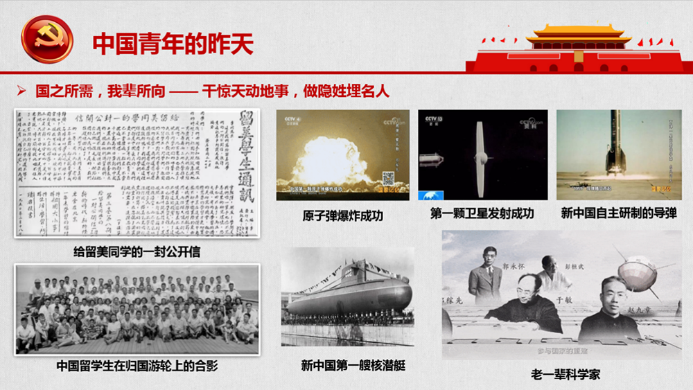 新中國成立之初,舉國上下一窮二白,百廢待興。廣大青年在黨的領(lǐng)導(dǎo)下,以“敢叫日月?lián)Q新天”的豪情壯志,用鮮血和汗水澆灌出一個可愛的中國?!盎厝グ?,把我們的汗水灑在祖國的土地上,灌溉出燦爛的花朵。”1950年,一封寫給留美中國學生的公開信,掀起了海外學子的歸國浪潮,國之所需,我輩所向。那一年,華羅庚、錢學森、鄧稼先、朱光亞等1000多名青年學子,不畏艱辛,奔向新中國。曾經(jīng)有人問鄧稼先,從國外帶了什么回來,他說:“帶了幾雙尼龍襪子,還帶了一腦袋原子核知識?!闭怯捎谧鎳辛诉@樣一批勇于奉獻的知識分子,才挺起了堅強的民族脊梁。在新中國的建設(shè)史上,他們用奉獻詮釋了青春無悔。