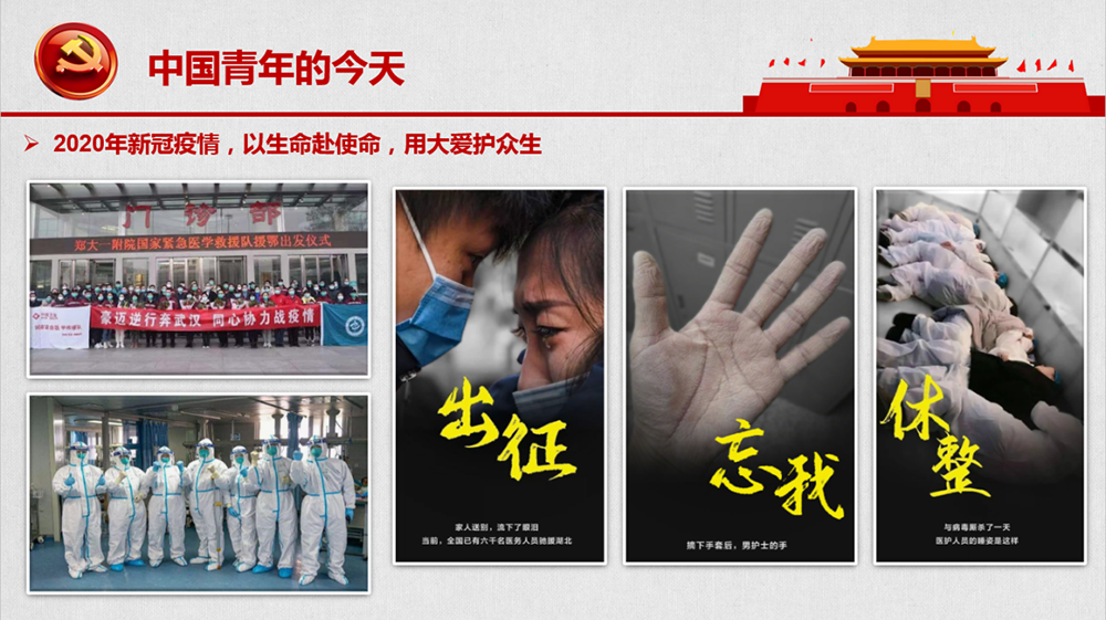 新冠病毒肆虐、城市被封,90后穿上防護服,不再是被呵護的孩子,而是被深深依賴的保護人。在抗擊災(zāi)難第一線,他們不畏艱險,沖鋒在前,以生命赴使命,用大愛護眾生。從當年的恰同學少年到今天的“708090,一代又一代中國青年為了民族復(fù)興而前赴后繼,定義了生命的精彩、歷史的脈動。