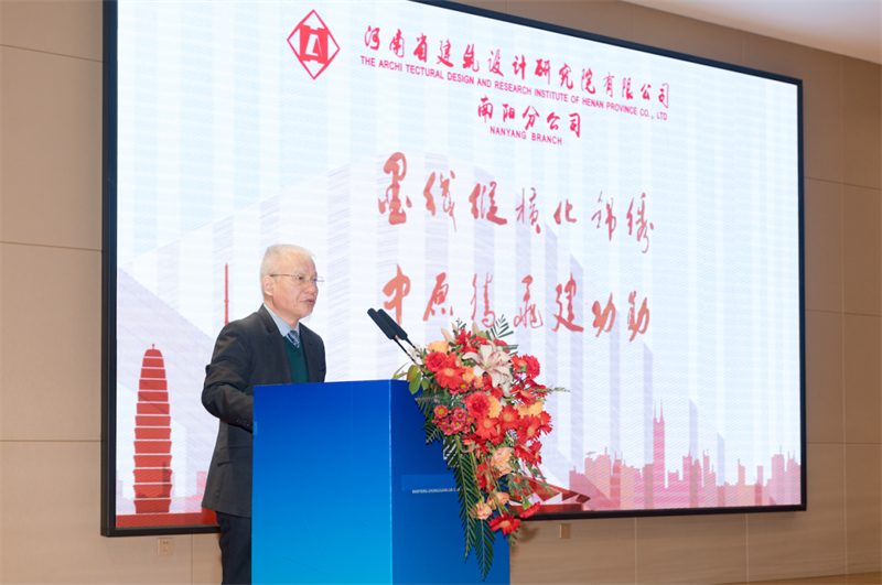 河南省住房和城鄉(xiāng)建設(shè)廳副廳長董海立、南陽市高新區(qū)黨工委書記康連星分別發(fā)表致辭,高度肯定了河南省建筑設(shè)計研究院有限公司成立七十年來立足家鄉(xiāng)、奉獻(xiàn)中原建設(shè)的累累碩果與開拓海外市場的銳意進(jìn)取。