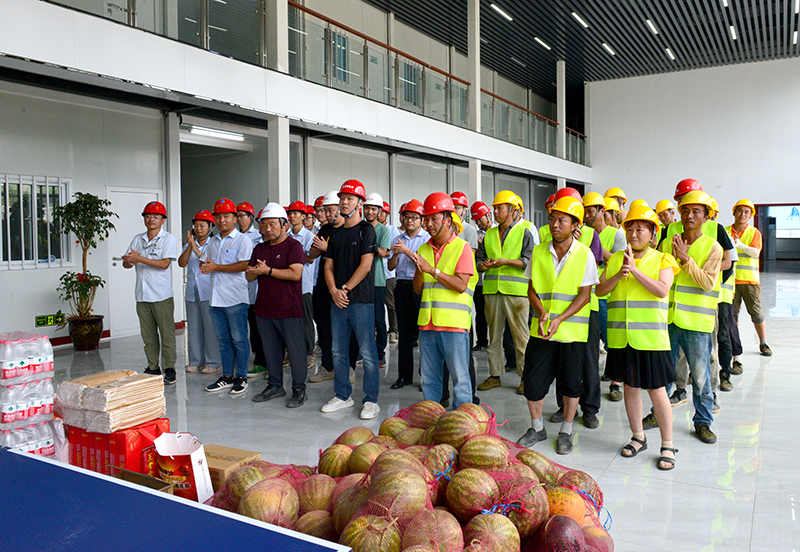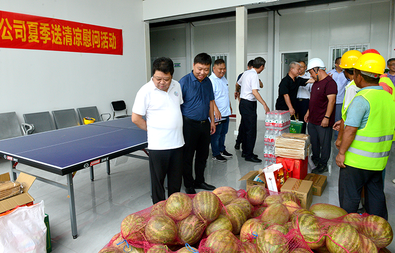 在工地現(xiàn)場,董事長孔杰同志代表公司對奮戰(zhàn)在項(xiàng)目一線的同事和工友們表示慰問,對他們在烈日下仍然堅(jiān)持加班加點(diǎn)、冒酷暑、戰(zhàn)高溫的辛勤工作表示感謝,并帶領(lǐng)大家深入到工地職工食堂和宿舍,了解工友們的伙食情況和住宿條件,囑咐現(xiàn)場負(fù)責(zé)同志要讓大家吃得安全、住得放心、注意防暑、保重身體,安全生產(chǎn)。