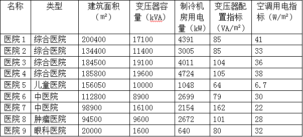 1.地域氣候條件:南方地區(qū)夏季比較炎熱,冷機(jī)容量大,其醫(yī)院的單位面積變壓器安裝容量會稍高一些。