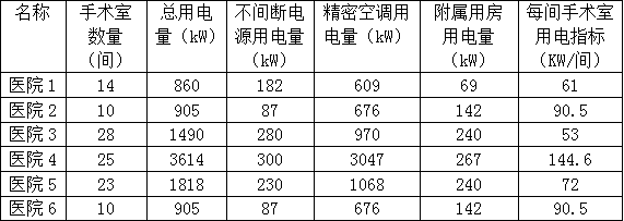 手術(shù)室總用電量可按70-90kW/間考慮,醫(yī)院3、醫(yī)院4、醫(yī)院5手術(shù)室數(shù)量相近,空調(diào)用電差別大,空調(diào)設(shè)置方案對手術(shù)室用量影響較大。