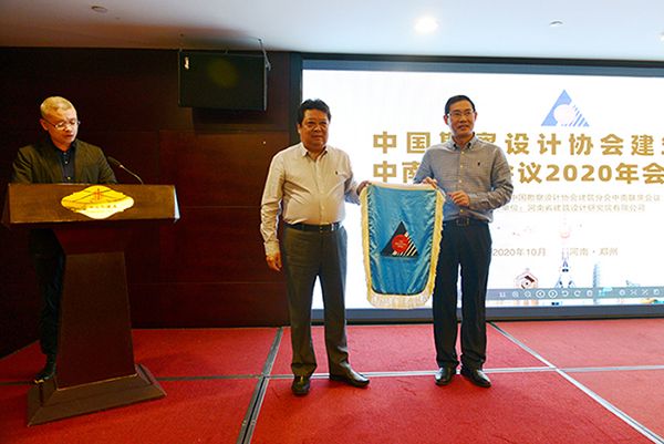 分組討論后舉行了中南聯(lián)席會(huì)會(huì)旗交接儀式,河南省建筑設(shè)計(jì)研究院有限公司董事長(zhǎng)孔杰鄭重地將會(huì)旗交于2021年年會(huì)承辦方華藍(lán)設(shè)計(jì)(集團(tuán))有限公司董事長(zhǎng)鐘毅的手中,鐘毅董事長(zhǎng)代表下一屆承辦單位發(fā)言,表示將辦好明年年會(huì)并歡迎會(huì)員單位到時(shí)踴躍參會(huì)。