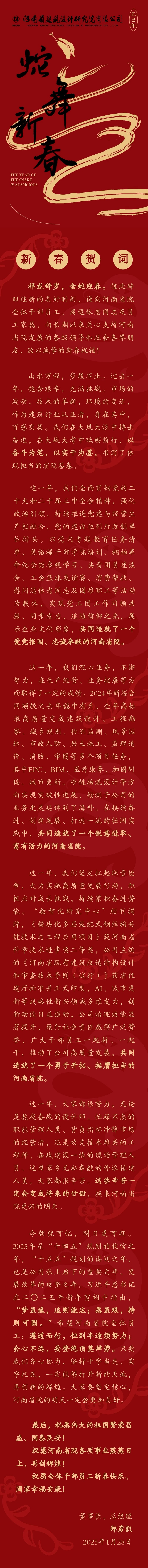 河南省建筑設(shè)計(jì)研究院有限公司二〇二五年新春賀詞