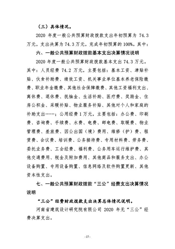 河南省建筑設計研究院有限公司離休干部經費決算公開